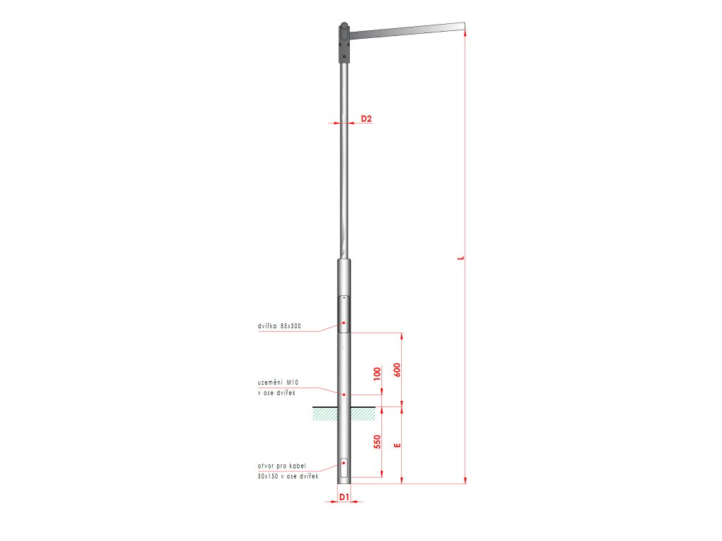 Délka L D1 D2 E Plocha stožáru Max. hmotnost svítidla