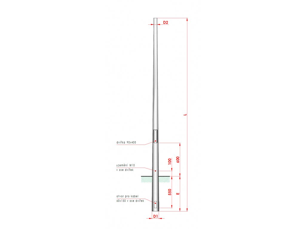- minimální délka vetknutí (cm), délka ukotvení stožáru do základu