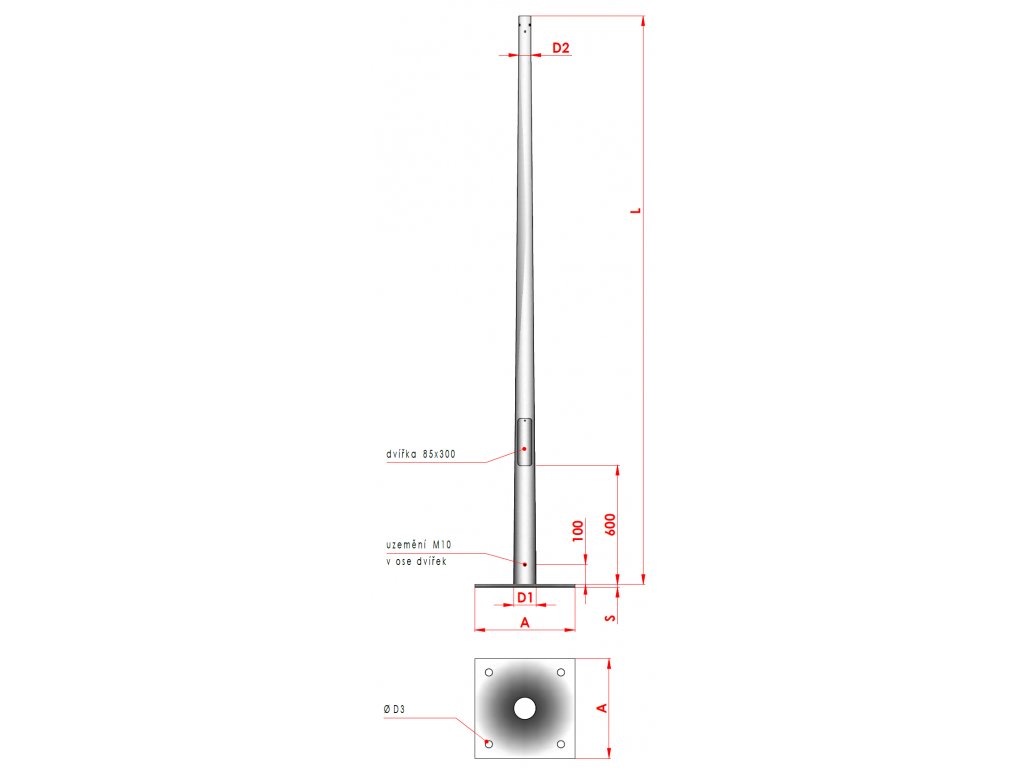 - vrcholový tah (N), který určuje maximální přípustné zatížení stožáru