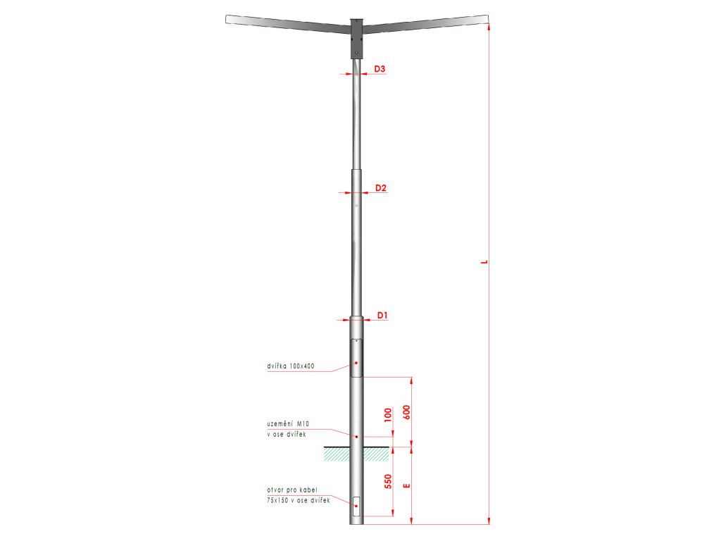 Délka L D1 D2 D3 E Plocha stožáru Max. hmotnost svítidla